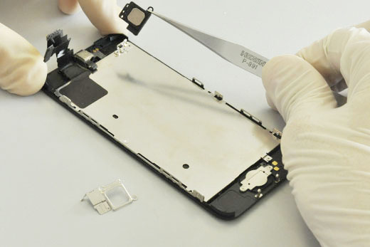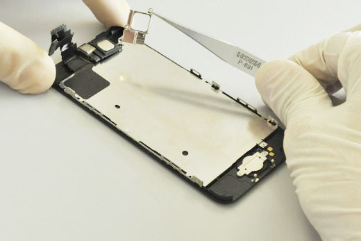 【工程6】フロントカメラのコネクタのネジと接点端子を外す