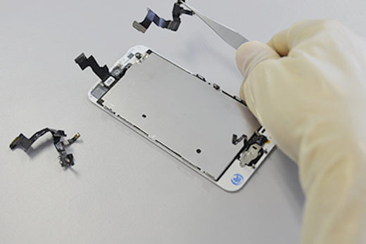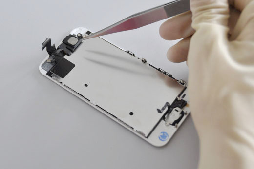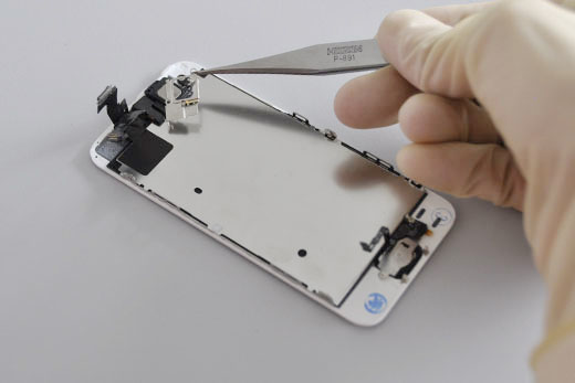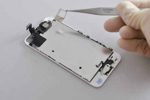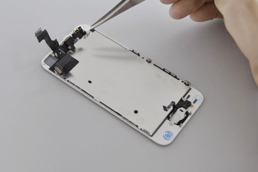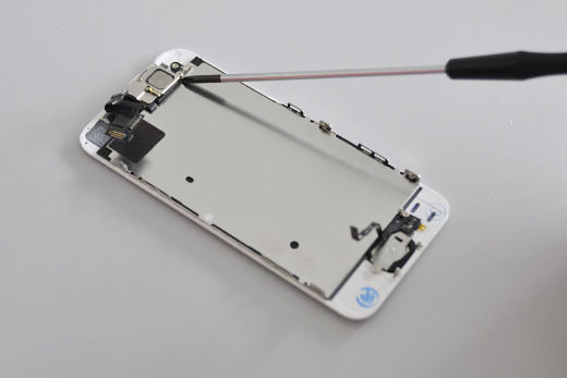 【工程6】フロントカメラのコネクタのネジと接点端子を外す