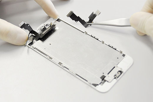 【工程6】フロントカメラのコネクタのネジと接点端子を取り外す